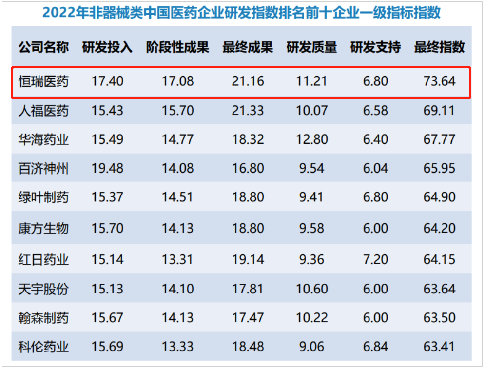 研发量质齐升,利来医药蝉联非器械类中国医药企业研发指数排名榜首